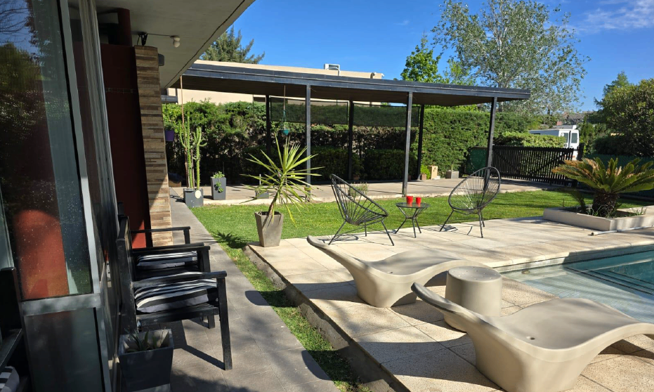 En cuanto a la distribución de sus ambientes, dispone de 2 dormitorios amplios, y 2 baños, una cocina equipada, completa, un comedor y un living que se integran para ofrecer un ambiente acogedor. Entre las características destacadas se encuentran un garaje semicubierto con capacidad para 3 vehículos el cual se puede utilizar como quincho, además tiene parrillero, una piscina y un jacuzzi, ambos climatizados, en el jardín parquizado. Cuenta con aire acondicionado y alarma.